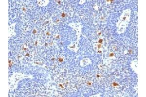 - Reacts with E6 protein of human papilloma virus type 16 (HPV-16). Infection with specific types of HPV has been associated with an increased risk of developing cervical neoplasia. HPV types 6 and 11 have been associated with relatively benign diseases such as genital warts but types 16 and 18 are strongly associated with cervical, vaginal, and vulvar malignancies. The antibody reacts very strongly with formalin-fixed, paraffin-embedded tissues containing HPV-16.