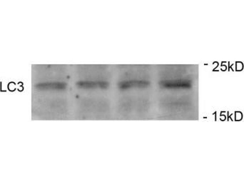 MAP1A and MAP1B are microtubule-associated proteins which mediate the physical interactions between microtubules and components of the cytoskeleton. These proteins are involved in formation of autophagosomal vacuoles (autophagosomes). MAP1A and MAP1B each consist of a heavy chain subunit and multiple light chain subunits. MAP1LC3a is one of the light chain subunits and can associate with either MAP1A or MAP1B. The precursor molecule is cleaved by APG4B/ATG4B to form the cytosolic form, LC3-I. This is activated by APG7L/ATG7, transferred to ATG3 and conjugated to phospholipid to form the membrane-bound form, LC3-II. Macroautophagy is the major inducible pathway for the general turnover of cytoplasmic constituents in eukaryotic cells, it is also responsible for the degradation of active cytoplasmic enzymes and organelles during nutrient starvation. Macroautophagy involves the formation of double-membrane bound autophagosomes which enclose the cytoplasmic constituent targeted for degradation in a membrane bound structure, which then fuse with the lysosome (or vacuole) releasing a single-membrane bound autophagic bodies which are then degraded within the lysosome (or vacuole).