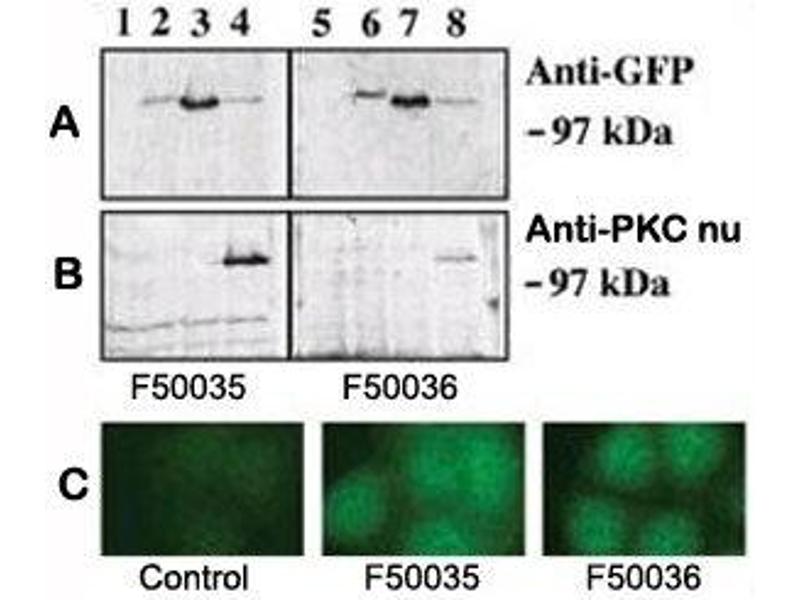 Aliquot the PKC nu antibody and store frozen at -20°C or colder. Avoid repeated freeze-thaw cycles.