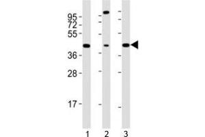 A portion of amino acids 350-400 (mouse) was used as immunogen for this Sox17 antibody.