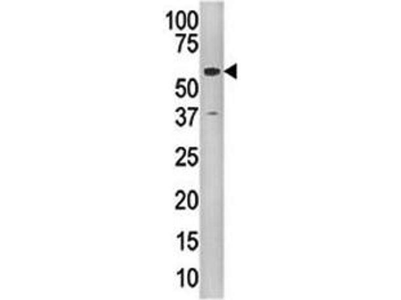 - Titration of the Tip60 antibody may be required due to differences in protocols and secondary/substrate sensitivity.\. Western blot: 1:1000