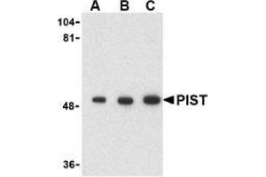 - PIST antibody was raised against a 16 amino acid peptide from near the carboxy terminus of Human PIST