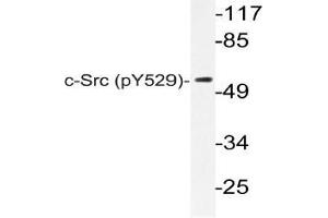 The major translational products of the members of the Src gene family identified to date are membrane-associated tyrosine protein kinases that lack transmembrane and external amino acid sequences, thereby distinguishing this group from the receptor class of tyrosine kinases. Members of this group include c-Src, c-Yes, Fyn, Lck, Lyn, Blk and c-Fgr. The major Src gene encoded protein, pp60Src, is expressed in a broad range of tissue and cell types, although the highest levels of pp60Src are detected in neuronal tissues and platelets. pp60Src may play a role in events associated with both neuronal differentiation and maintenance of mature neuronal cell functions.Synonyms: Proto-oncogene c-Src, Proto-oncogene tyrosine-protein kinase Src, c-Src, pp60c-src