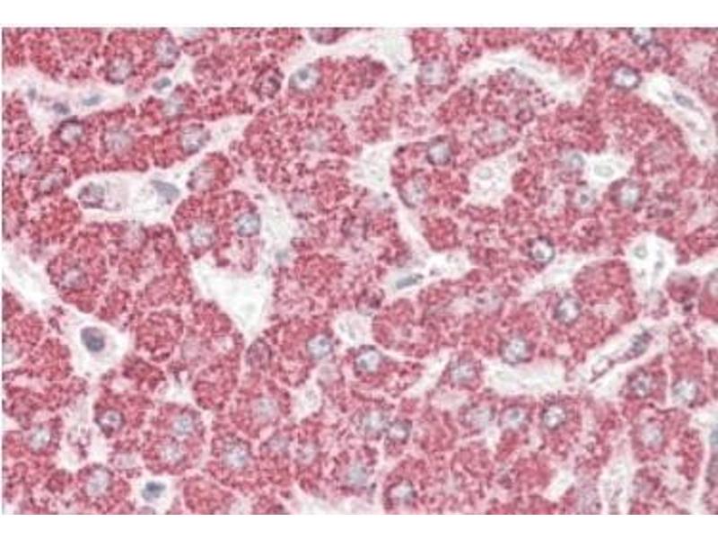 Peptide ELISA: Limit Dilution: 1/8000. Western blot: 0.01-0.03 μg/mL. This antibody detects a band of approx. 26 kDa in Human, Mouseand Rat Liver lysates.