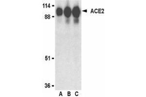 - ACE2 antibody was raised against a synthetic peptide corresponding to amino acids near the center of human ACE2. Anti-ACE2 has no cross response to ACE1.