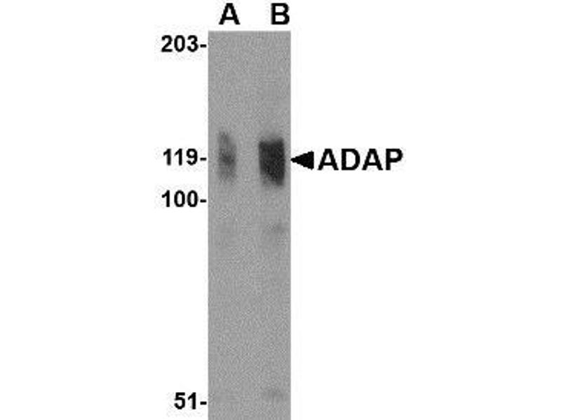 - ADAP antibody was raised against a 17 amino acid peptide from near the amino terminus of human ADAP.