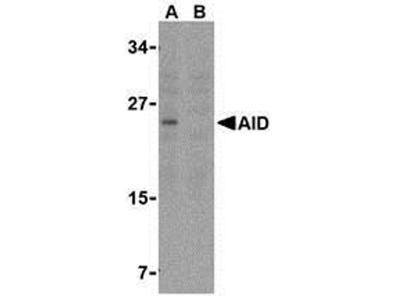 ELISA. Western Blot: AID antibody can be used for detection of AID at 1 - 2 μg/mL. Whole cell lysatefrom Ramos cells can be used as positive control. Immunocytochemistry. Other applications not tested. Optimal dilutions are dependent on conditions and should be determined by the user.