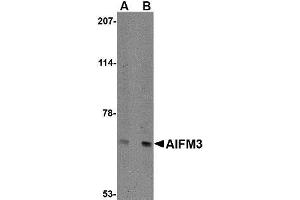 Apoptosis, also known as programmed cell death, plays major roles in development and normal tissue turnover in addition to tumor formation. Recently a protein similar to the apoptosis-inducing factor (AIF) was cloned and designated AIFL (also known as AIFM3). AIFM3 is expressed ubiquitously and is predominantly localized to the inner membranes of mitochondria. Unlike AIF, AIFM3 does not translocate to the nucleus upon induction of apoptosis. However, overexpression of AIFM3, like AIF, induced cytochrome c release from the mitochondria, cleavage of caspase 3, and ultimately apoptosis, indicating AIFM3 induces apoptosis through caspase activation. Multiple isoforms of AIFM3 are known to exist.Synonyms: AIFL, Apoptosis-inducing factor 3