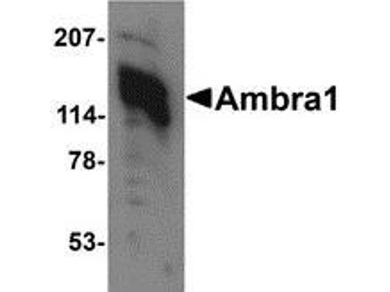 ELISA. Western Blot: Ambra1 antibody can be used for the detection of Ambra1 at 1 - 2 μg/mL. Immunohistochemistry. Other applications not tested. Optimal dilutions are dependent on conditions and should be determined by the user.
