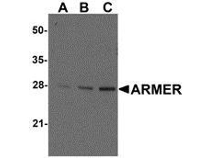 ELISA. Western Blot: ARMER antibody can be used for detection of ARMER at 0.5 to 2 μg/mL. Immunohistochemistry.