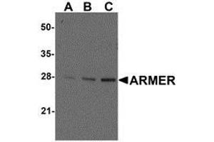 - ARMER antibody was raised against a peptide corresponding to 15 amino acids near the C-terminus of human ARMER.