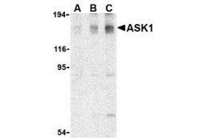 - ASK1 antibody was raised against a 16 amino acid peptide from near the carboxy terminus of human ASK1.