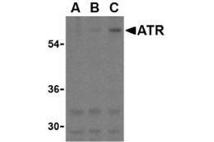 - ATR antibody was raised against a peptide corresponding to 13 amino acids near the C-terminus of human ATR. ATR will recognize only the largest isoform.