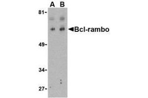 ELISA. Western Blot: Bcl-rambo antibody can be used for the detection of Bcl-rambo at 2 μg/mL. K562 cell lysate can be used as positive control. Immunohistochemistry. Other applications not tested. Optimal dilutions are dependent on conditions and should be determined by the user.