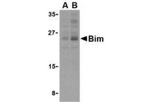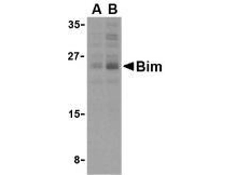 - Members in the Bcl-2 family are critical regulators of apoptosis by either inhibiting or promoting cell death. Bcl-2 homology 3 (BH3) domain is a potent death domain. BH3 domain containing pro-apoptotic proteins, including Bad, Bax, Bid, Bik, and Hrk, form a growing subclass of the Bcl-2 family. A novel BH3 domain containing protein was recently identified and designated Bim or BOD in human, mouse and rat (1,2). Bim/BOD interacts with diverse members in the pro-survival Bcl-2 sub-family including Bcl-2, Bcl-xL and Bcl-w. Bim/BOD induces apoptosis. The messenger RNA of Bim is ubiquitously expressed in multiple tissues and cell lines (1,2).Synonyms: BCL2L11, BIM, Bcl2-L-11, Bcl2-interacting mediator of cell death, BimEL, BimL, BimS