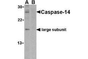 ELISA. Western Blot: Caspase-14 antibody can be used for the detection of caspase-14 at 1 μg/mL. Immunohistochemistry. Other applications not tested. Optimal dilutions are dependent on conditions and should be determined by the user.