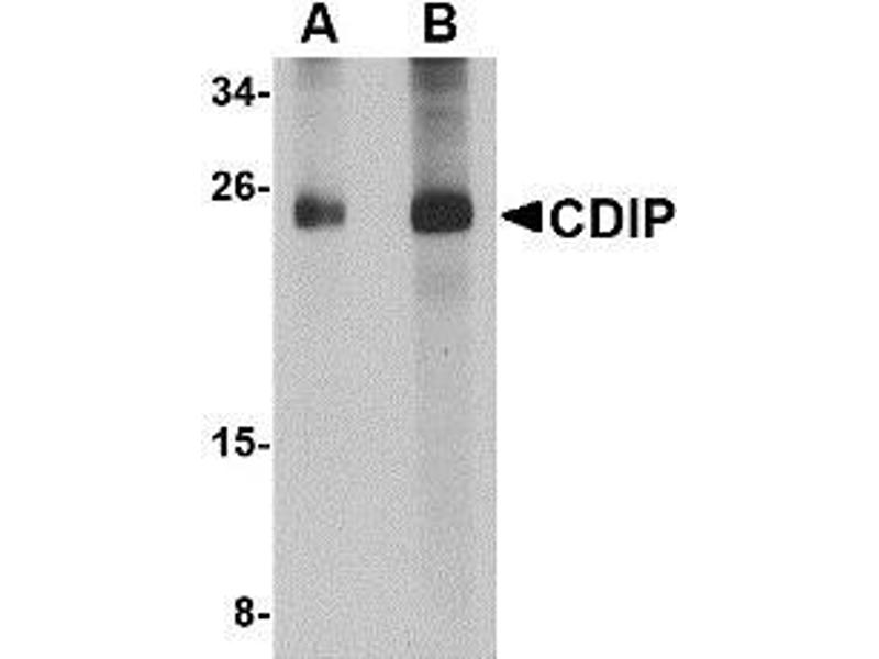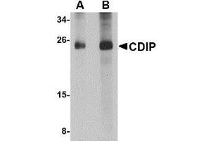 ELISA. Western Blot: CDIP antibody can be used for detection of CDIP at 1 - 2 μg/mL. Immunohistochemistry. Other applications not tested. Optimal dilutions are dependent on conditions and should be determined by the user.