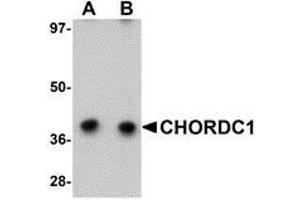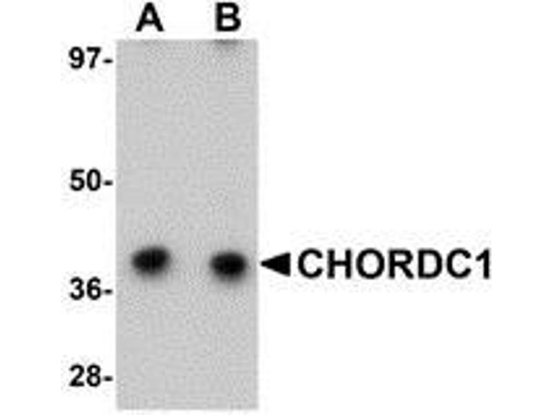 - CHORDC1 antibody was raised against a 21 amino acid peptide near the amino terminus of human CHORDC1.