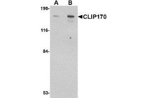 ELISA. Western Blot: CLIP170 antibody can be used for detection of CLIP170 at 0.5 - 1 μg/mL. Immunofluorescence. Other applications not tested. Optimal dilutions are dependent on conditions and should be determined by the user.