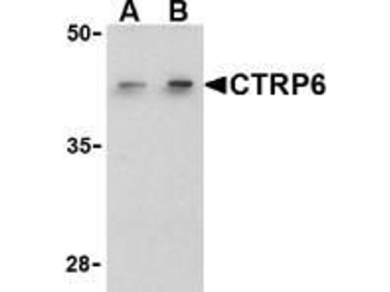 Adipose tissue of an organism plays a major role in regulating physiologic and pathologic processes such as metabolism and immunity by producing and secreting a variety of bioactive molecules termed adipokines (reviewed in 1). One highly conserved family of adipokines is adiponectin/ACRP30 and its structural and functional paralogs, the C1q/tumor necrosis factor-?-related proteins (CTRPs) 1-7 (2). Unlike adiponectin, which is expressed exclusively by differentiated adipocytes, the CTRPs are expressed in a wide variety of tissues (3). These proteins are thought to act mainly on liver and muscle tissue to control glucose and lipid metabolism. An analysis of the crystal structure of adiponectin revealed a structural and evolutionary link between TNF and C1q-containing proteins, suggesting that these proteins arose from a common ancestral innate immunity gene (4). CTRP6 contains at least 4 glycosylation motifs, suggesting that CTRP6 may be highly post-translationally modified (3).Synonyms: CTRP6, Complement C1q tumor necrosis factor-related protein 6
