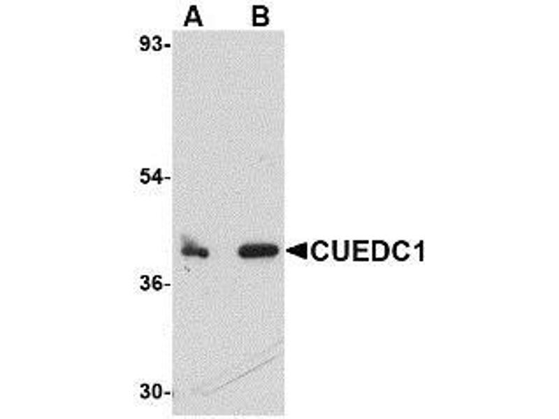 - CUEDC1 antibody was raised against a 16 amino acid peptide near the carbocy terminus of human CUEDC1.