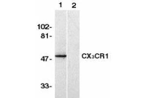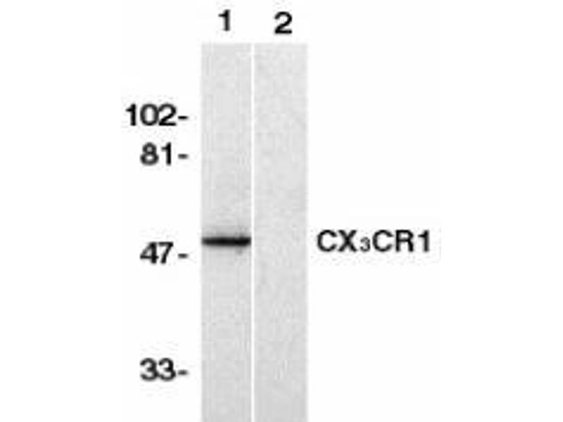 ELISA. Western Blot: CX3CR1 antibody can be used for detection of CX3CR1 at 1/500 to 1/2000dilution. An approximately 50 kDa band can be detected. Immunohistochemistry. FACS. Other applications not tested. Optimal dilutions are dependent on conditions and should be determined by the user.