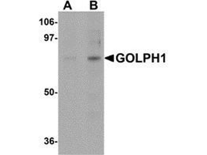 GOLPH1, also known as GCP60, was initially identified as a Golgi protein that can interact with the integral membrane protein giantin and is thought to be involved in the maintenance of the Golgi structure. GOLPH1 has also been shown to interact with other Golgi proteins such as Golgin-160, a Golgi protein that can be cleaved by caspases-2, -3, and -7, leading to the nuclear localization of Golgin-160. GOLPH1 interaction with the Golgin-160 fragments is stronger than that with the intact Golgin-160, with its interaction regulated by the oxidation state of Cys-463 within GOLPH1, suggesting that the nuclear localization of the caspase-cleaved Golgin-160 fragments is a highly coordinated event. GOLPH1 has also been found to interact with Numb, a cytosolic signaling protein that mediates asymetric cell division of neural progenitor cells to a daughter progenitor cell and a neuron, suggesting that Golgi fragmentation and reconstitution during the cell cycle differentially regulate Numb signaling through changes in GOLPH1 subcellular distribution and may couple cell fate with cell cycle progression.Synonyms: Acyl-CoA-binding domain-containing protein 3, GOCAP1, GOLPH1, Golgi complex-associated protein 1, Golgi phosphoprotein 1, Golgi resident protein GCP60, PAP7, PBR- and PKA-associated protein 7, Peripheral benzodiazepine receptor-associated protein