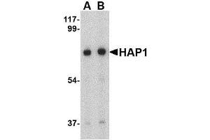 - HAP1 antibody was raised against a 19 amino acid peptide from near the center of human HAP1.