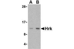 - HRK antibody was raised against a 15 amino acid peptide from near the center of Human Hrk.