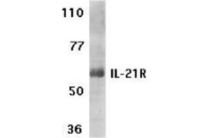 A novel cytokine related to IL2 and IL15 was recently identified and designated IL-21 . The receptor for IL-21 (IL-21R, also termed NILR for novel Interleukin receptor) is a new member of the class I cytokine receptor family (1,2). IL-21R forms a complex with the common cytokine receptor g chain, gc, and mediates IL-21 signaling (3,4). Both IL-21R and the gc are necessary for the IL-21 function. IL-21 and its receptor activate JAK-STAT signaling pathway. IL-21R is expressed in spleen, thymus, natural killer (NK), T and B cell lines. IL-21 plays a role in the proliferation and maturation of NK, B and T cell populations.Synonyms: IL-21R, IL21 receptor, NILR, Novel interleukin receptor