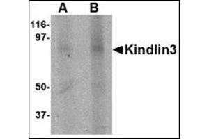 The three KINDLINs are a novel family of focal adhesion proteins, localizing to integrin adhesion sites. The KINDLIN proteins are composed of a centrally located FERM domain interrupted by a pleckstrin homology (PH) domain. KINDLIN1 and KINDLIN2 have been shown to play an essential role in integrin-mediated adhesion and spreading. In contrast to the widely expressed KINDLIN1 and KINDLIN2, KINDLIN3 is restricted to hematopoietic cells and is particularly abundant in megakaryocytes and platelets. Several reports describe a transcriptional misregulation of KINDLINs in various types of cancer. A recent study demonstrates that KINDLIN3 is essential for platelet integrin activation and subsequent integrin outside-in signaling, suggesting it may serve as a potential target for the design of therapeutics aimed at specifically disrupting integrin activation in platelets and leukocytes.Synonyms: Fermitin family homolog 3, KIND3, Kindlin-3, MIG2-like protein, MIG2B, URP2, Unc-112-related protein 2