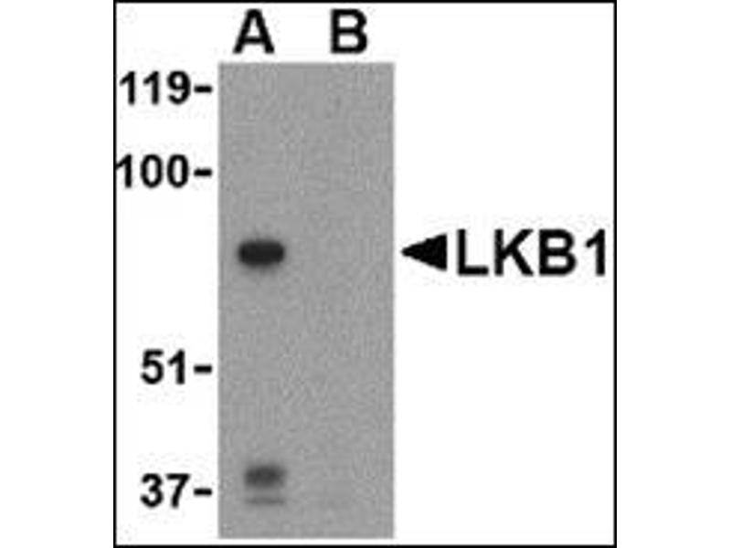 - The LKB1 serine/threonine protein kinase was initially identified as a tumor suppressor gene mutated in human Peutz-Jeghers syndrome (PJS), a condition resulting in the growth of numerous intestinal polyps classed as hamartomas. LKB1 exists as a heterotrimeric complex with two other proteins, Ste20-related adaptor protein (STRAD) and MO25. Together, this complex can phsophorylate and activate the AMP-activate protein kinase (AMPK). Following AMPK activation by LKB1, AMPK then phosphorylates TSC1 and TSC2, key components of the metabolism-regulating TOR signaling pathway, which antagonizes the activation for the TOR pathway. LKB1 has also been shown to play a fundamental role in controlling the spatial orientation of structures required to maintain an ordered, polarized epithelium. LKB1 often migrates at a higher than expected molecular weight in SDS-PAGE.Synonyms: LKB1, NY-REN-19, PJS, Renal carcinoma antigen NY-REN-19, Serine/threonine-protein kinase 11, Serine/threonine-protein kinase LKB1