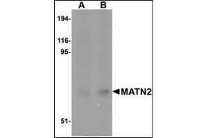 - MATN2 antibody was raised against a 15 amino acid peptide from near the carboxy terminus of human MATN2.