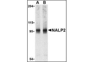 NALP2 belongs to a family of cytoplasmic proteins that have been implicated in cell responses to apoptotic and inflammatory stimuli (1). Unlike the prototypical NALP protein NALP1, NALP2 only contains a NACHT domain, leucine rich repeat (LRR), and pyrin-containing domain (PYD) (2). This protein interacts with the adapter protein ASC in addition to CARD8 and caspase-1 to form an inflammasome with high proIL-1Β-processing activity and is thought to function as a modulator of NF-ΚB and procaspase-1 activation in macrophages (2,3). It has also been suggested that NALP2, in addition to other NALP family members, can act as innate sensors of pathogens in a manner similar to the toll-like receptors (TLRs) (4). At least two alternatively spliced transcript variants encoding distinct isoforms have been found for NALP2.Synonyms: LRR and PYD domains-containing protein 2, NACHT, NBS1, NLRP2, PAN1, PYPAF2