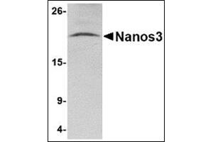 - Nanos3 antibody was raised against a 16 amino acid peptide near the carboxy terminus of the human Nanos3.