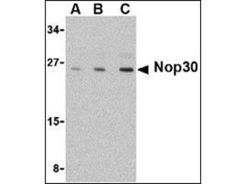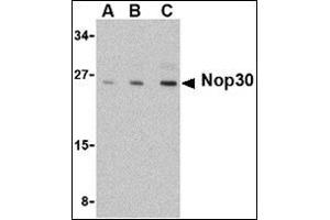 - Nop30 antibody was raised against a 14 amino acid peptide from near the carboxy terminus of human Nop30.