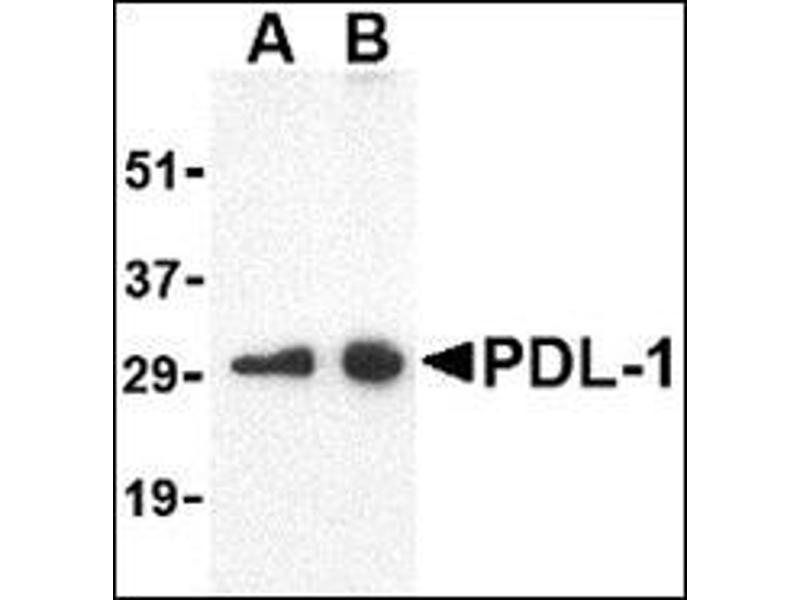 Cell-mediated immune responses are initiated by T lymphocytes that are themselves stimulated by cognate peptides bound to MHC molecules on antigen-presenting cells (APC). T-cell activation is generally self-limited as activated T cells express receptors such as PD-1 (also known as PDCD-1) that mediate inhibitory signals from the APC. PD-1 can bind two different but related ligands, PDL-1 and PDL-2. PDL-1 is a B7-related protein that inhibits cell-mediated immune responses by reducing the secretion of IL-2 and IL-10 from memory T cells. This suggests that PDL-1 may be useful in reducing allogenic CD4+ memory T-cell responses to endothelial cells, thereby reducing the likelihood of host immune responses to allografts. At least two isoforms of PDL-1 are known to exist.Synonyms: B7 homolog 1, B7H1, PD-L1, PDCD1 ligand 1, PDCD1L1, PDCD1LG1, Programmed cell death 1 ligand 1, Programmed death ligand 1