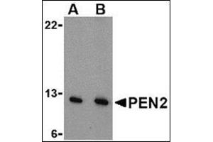 - PEN2 antibody was raised against a 13 amino acid peptide from near the amino terminus of human PEN2.