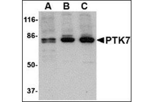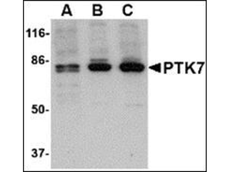 - PTK7 antibody was raised against a 15 amino acid peptide from near the amino terminus of human PTK7.