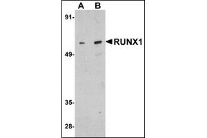 RUNX1 is one of three mammalian RUNX genes that control multiple aspects of embryonic development and are responsible for the pathogenesis of many human diseases. RUNX1 plays major roles in the development of nociceptive sensory neurons in addition to hematopoietic stem cells (HSC) with the exception of the erythroid lineage. During development, Notch signals mediate RUNX1 induction with SCL/GATA/Ets factors, and Wnt signals potentially cooperate with RUNX1 to facilitate adult HSC expansion via cooperative induction of cyclin D, cdk4, and other cell cycle regulators. In turn, RUNX1 regulates cell cycle transitions dependent on functional/physical interactions with other proteins such as HDAC1 and -3, mSin3A, p300, SMAD proteins, and LEF/TCF.Synonyms: 1, AML-1, AML1, AML1-EVI-1, AMLCR1, Acute myeloid leukemia 1 protein, CBF-alpha-2, CBFA2, Core-binding factor subunit alpha-2, EVI-1, PEA2-alpha B, PEBP2-alpha B, PEBP2A2, Polyomavirus enhancer-binding protein 2 alpha B subunit, Runt-related transcription factor, SL3-3 enhancer factor 1 alpha B subunit, SL3/AKV core-binding factor alpha B subunit