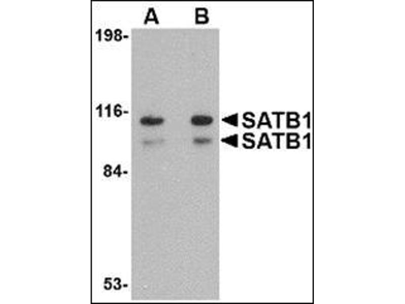 Human special AT-rich sequence-binding protein-1 (SATB1) is a nuclear matrix/scaffold-associated region DNA-binding protein, predominantly expressed in the thymus and pre-B cells. Like its homolog SATB2, SATB1 selectively binds double-stranded, special AT-rich DNA sequences in which one strand exclusively consists of well-mixed A, T, and C nucleotides. SATB1 contains a dimerization domain that shares similarity with the PDZ motif, identified as an indispensable element for high-affinity binding of SATB1 to DNA. SATB1 constitutes a functional nuclear architecture that has a 'cage-like' protein distribution surrounding heterochromatin and regulates gene expression through chromatin remodeling/HDAC (histone deacetylase complex) and transcription factors recruitment. SATB1 functions as a 'genome organizer' essential for proper T-cell development. Recent studies show that SATB1 is necessary for breast cancer cells to become metastatic, and when ectopically expressed in non-metastatic cells, can induce invasive activity in vivo. At least two isoforms of SATB1 are known to exist.Synonyms: DNA-binding protein SATB1, Special AT-rich sequence-binding protein 1