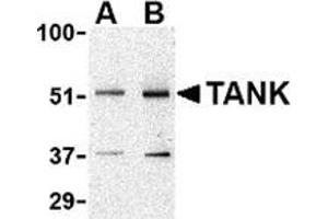 - TANK antibody was raised against a 14 amino acid peptide from near the amino terminus of human TANK.