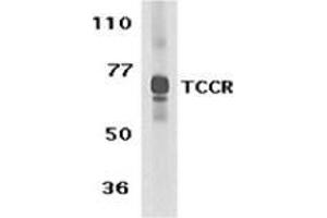 TCCR antibody was raised against a synthetic peptide corresponding to amino acids near the carboxy terminus of human TCCR precursor. Remarks: The sequence is identical to that of mouse TCCR.