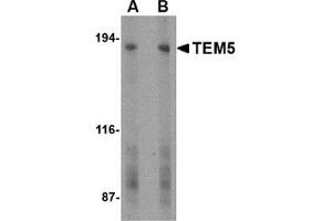 Tumor endothelial markers (TEMs) are significantly up-regulated during angiogenesis and neoangiogensis that are crucial for the growth of solid tumors. TEMs localized on the cell surface and conserved across species are of particular interest for future development of anti-angiogenic therapies. These include TEMs such as TEM1, TEM5, TEM7 and TEM8. TEM5 is a member of the adhesion family of G protein coupled receptors and is localized on the surface of endothelial cells. TEM5 is a seven-pass transmembrane receptor, unlike TEM1, TEM7 and TEM8 which span the membrane once. TEM5 is abundantly expressed in tumor vessels, heart, placenta, ovary, small intestine, and colon. Proteolytically processed soluble TEM5 mediates endothelial cell survival during angiogenesis by linking integrin to glycosaminoglycans.Synonyms: G-protein coupled receptor 124, KIAA1531, Tumor endothelial marker 5