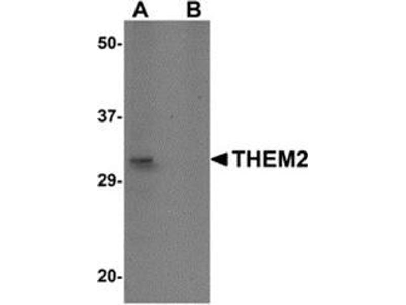 THEM2, also known as ACOT13, belongs to the hotdog-fold superfamily and possesses thioesterase activity, with greater activity observed with longer chain acyl-CoAs such as myristoyl- and palmitoyl-CoA. THEM2 is highly expressed in several tissues such as heart, kidney, liver and brain and has been shown to be co-localized with beta-tubulin on microtubules. THEM2 interacts with StarD, a protein that plays a key role in fatty acid metabolism, and the addition of StarD to THEM2 increased its catalytic activity, suggesting that THEM2 plays a significant role in the metabolism of fatty acids. At least two isoforms of THEM2 are known to exist.Synonyms: Acyl-CoA thioesterase 13, Acyl-coenzyme A thioesterase 13, HT012, PNAS-27, Thioesterase superfamily member 2