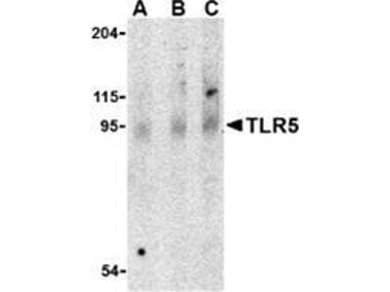 - TLR5 antibody was raised against a peptide corresponding to 16 amino acids near the center of human TLR5.