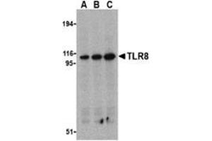 - TLR8 antibody was raised against a peptide corresponding to 16 amino acids near the middle of human TLR8.