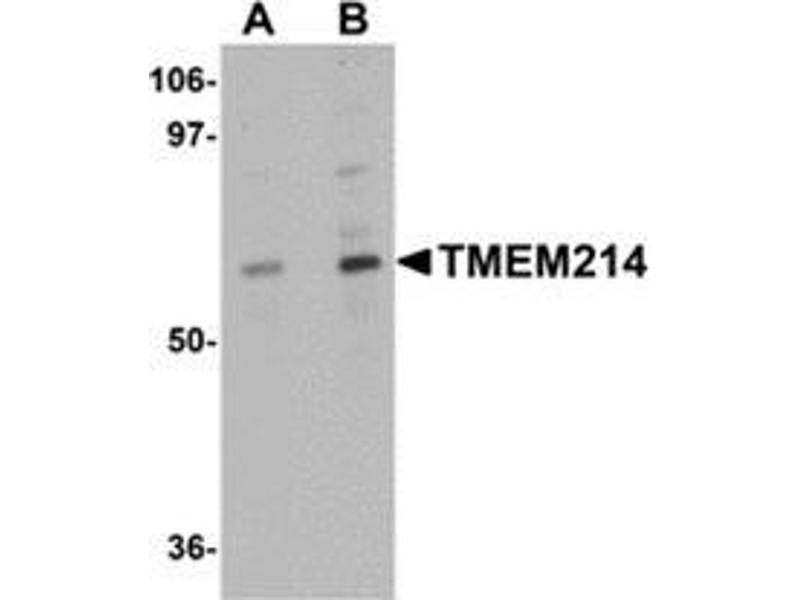 Transmembrane protein 214 (TMEM214) is a 77kD membrane protein which is widely expressed at high level. The gene encoding this protein maps to chromosome 2, at 2p23.3 TMEM214 interacts with LSM1, an SM-like protein, forming a stable heteromer present in tri-snRNP particles, which are important for pre-mRNA splicing. The detailed function of TMEM214 is still unknown, but a recent study showed that TMEM214 may be used to explore the contribution of human host factors of some infectious diseases such as Dengue fever, West Nile fever and yellow fever. Multiple isoforms of TMEM214 are known to exist.Synonyms: Transmembrane protein 214