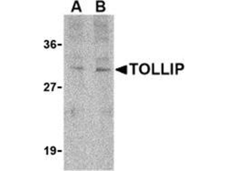 Toll-like receptors (TLRs) are evolutionarily conserved pattern-recognition molecules resembling the toll proteins that mediate antimicrobial responses in Drosophila. These proteins recognize different microbial products during infection and serve as an important link between the innate and adaptive immune responses (1,2). The TLRs act through adaptor molecules to activate various kinases and transcription factors (3) so the organism can respond to potential infection. These adaptor molecules include TOLLIP, MyD88, and TRIF. TOLLIP associates directly with TLR2 and TLR 4, acting as an inhibitor to TLR activation (4). This negative regulation of TLR signaling may serve to limit the production of proinflammatory mediators during infection and inflammation.Synonyms: Toll-interacting protein