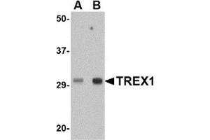 Trex1 is the major human 3\' to 5\' exonuclease which is required for checkpoint signaling after DNA damage. It is ubiquitously expressed, binds to single stranded DNA coated with replication protein A that accumulates at sites of DNA damage and recruits the ataxia telangiectasia and Rad3 related protein (ATR), a checkpoint kinase, to sites of DNA damage and replication stress. Trex1 is required for ATR expression. This gene uses two different open reading frames. The upstream ORF encodes proteins which interact with ATR and localize to intranuclear foci induced by DNA damage and are essential components of the DNA damage checkpoint. The downstream ORF encodes proteins with 3\' to 5\' exonuclease activity and may be a subunit of human DNA polymerase III. Multiple transcript variants encoding different isoforms have been found. Mutations in this gene result in Aicardi-Goutieres syndrome, chilblain lupus, and Cree encephalitis.Synonyms: 3'-5' exonuclease TREX1, DNase III, Three prime repair exonuclease 1